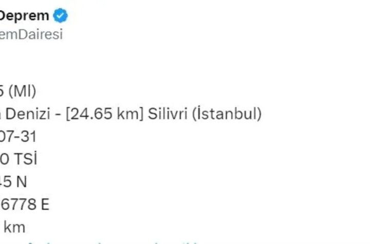 İstanbul'un Silivri açıklarında saat 13.36'da 3,5 büyüklüğünde bir sarsıntı meydana geldi. AFAD'dan alınan bilgiye...