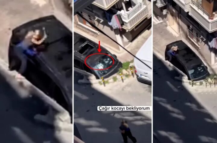 İstanbul'da hudut krizi geçiren bir bayan, "Kocanı ara" diyerek sokak ortasında bir aracı çekiçle...