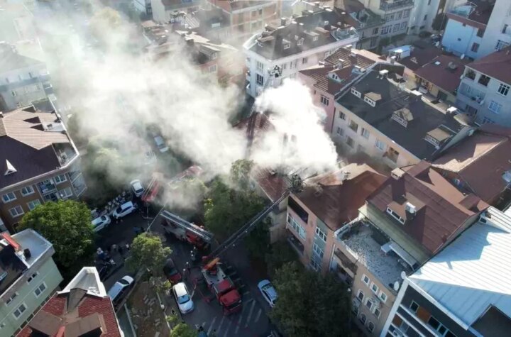 Üsküdar'da çıkan yangın, 3 katlı bir binanın çatısından 4 katlı bir apartmana sıçradı. İtfaiye...